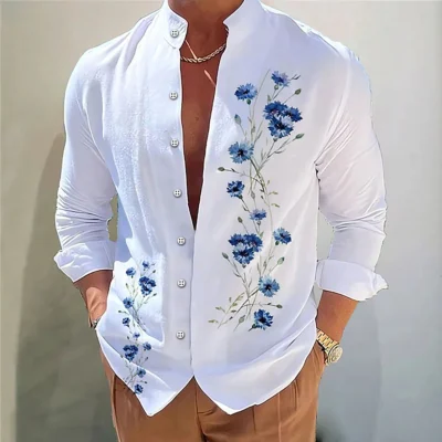 Men’s shirt flower shirt 3D printing casual daily outdoor street stand collar long sleeve shirt fashionable and comfortable