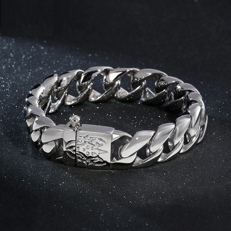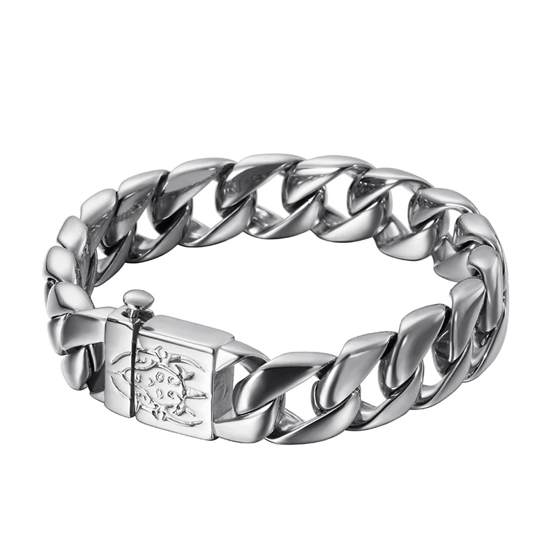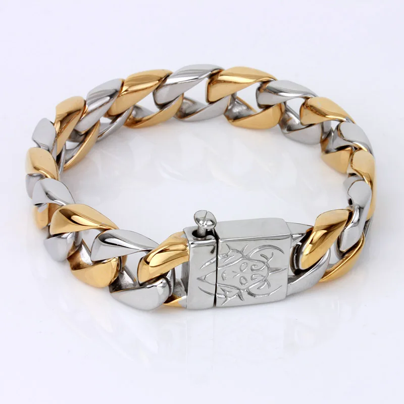 15mm Punk Retro Black Curb Cuban Chain Bracelet Men Women Hiphop Gold Color Stainless Steel Bike Biker Skull Bangle Jewelry