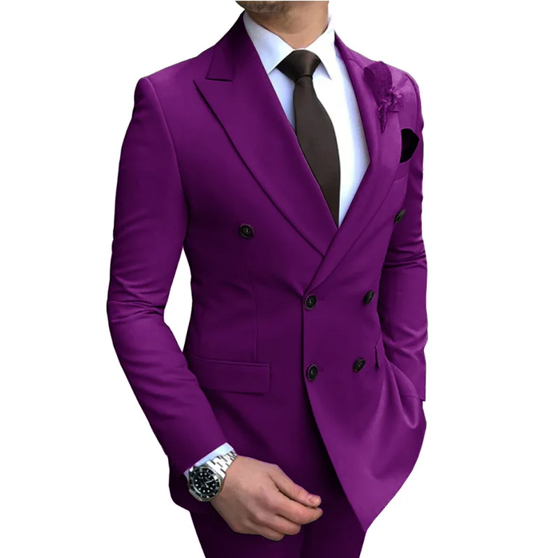 High Quality Double Breasted Men Suits Luxury Solid Color Custom Made Male Clothing Prom Party 2 Piece Jacket Pants Costume 2024