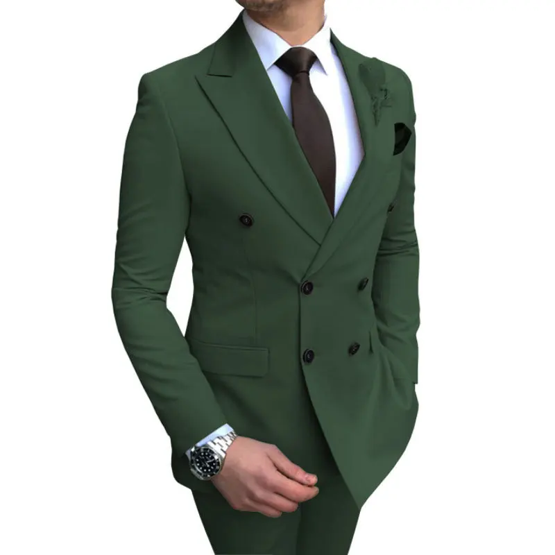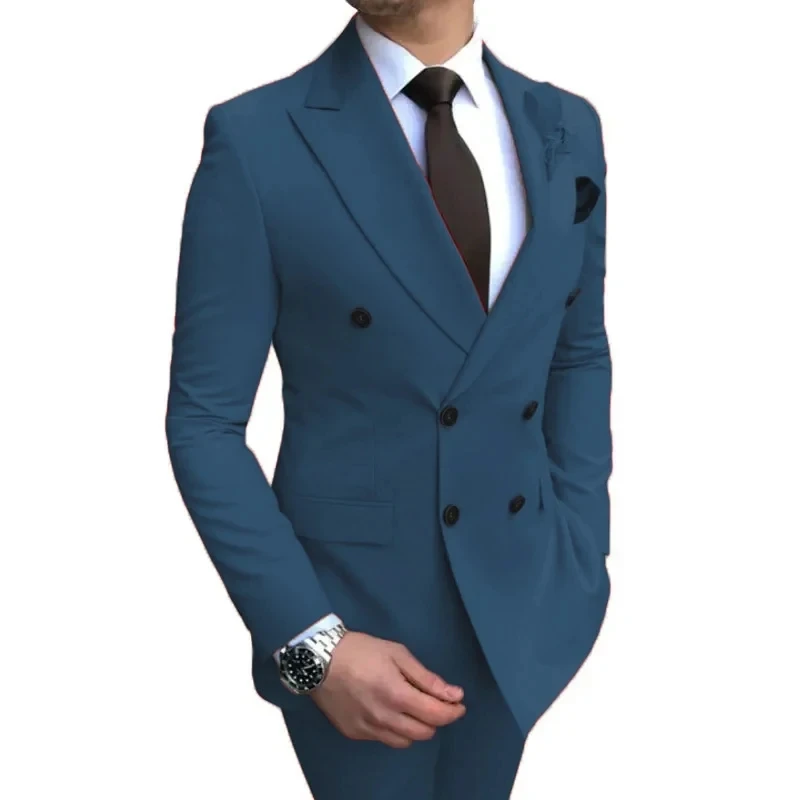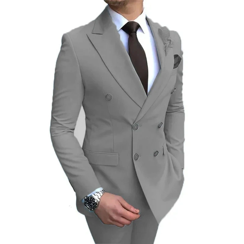 2023 Wedding Suits Men Business Fashion 2 Piece Set Slim Jacket Dress Blazers Coat Pants Trousers Solid Color Double Breasted