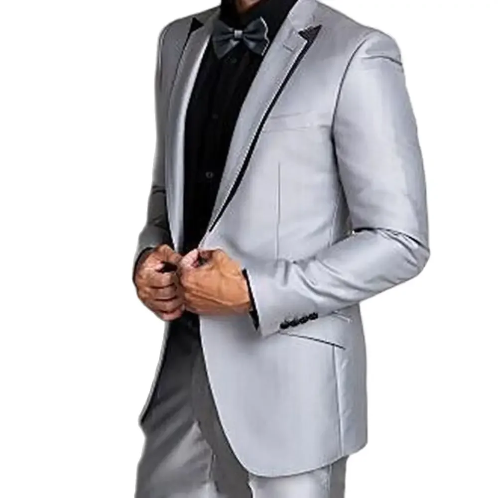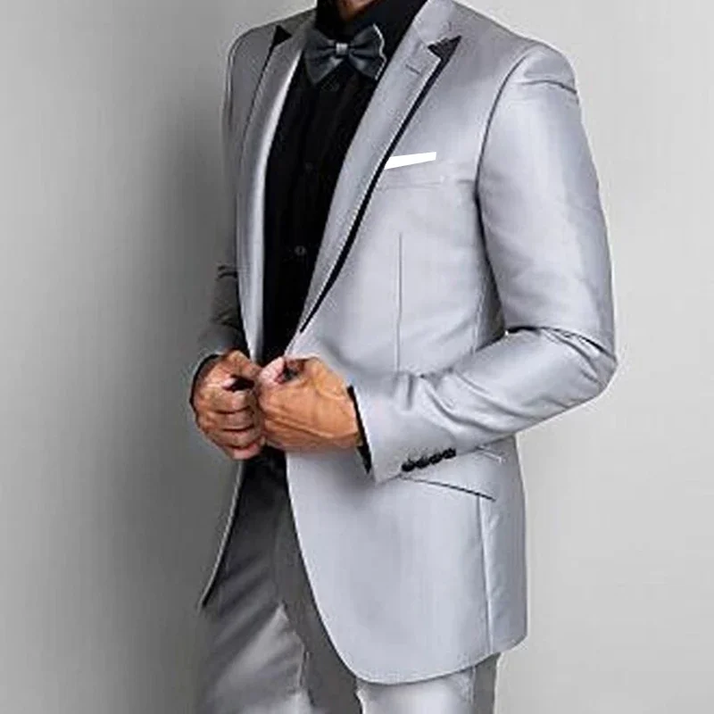 2024 Grey Satin Formal Wedding Elegant Men Suit Groom Tuxedo Prom Blazer Hombre High Quality Custom 2 Piece Set Costume Homme