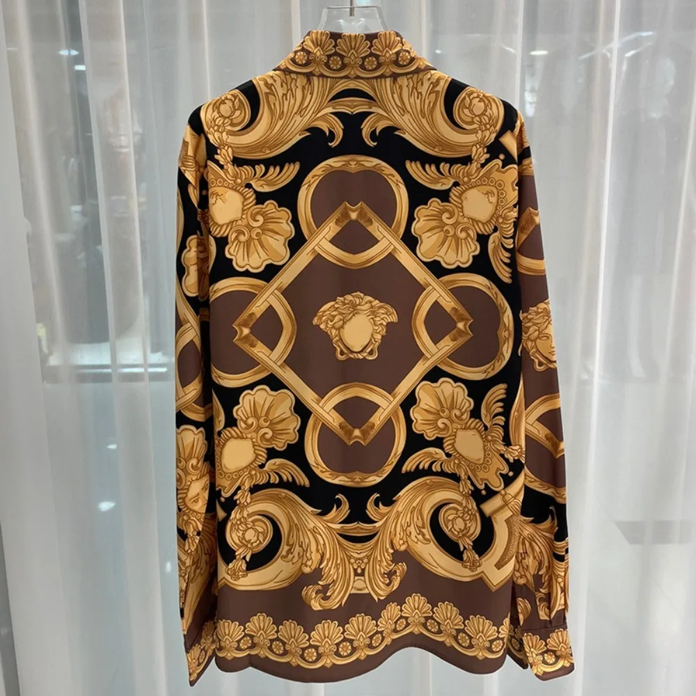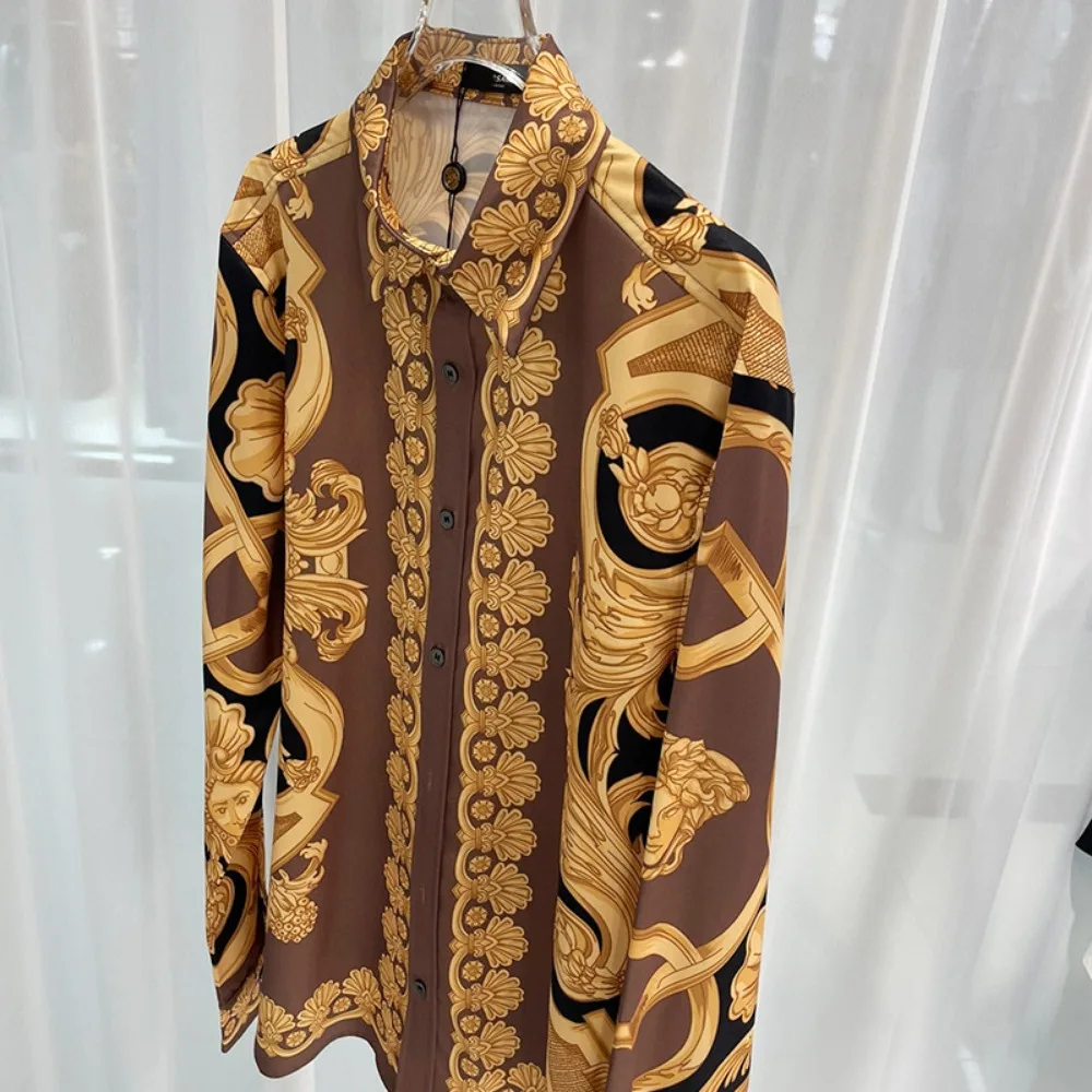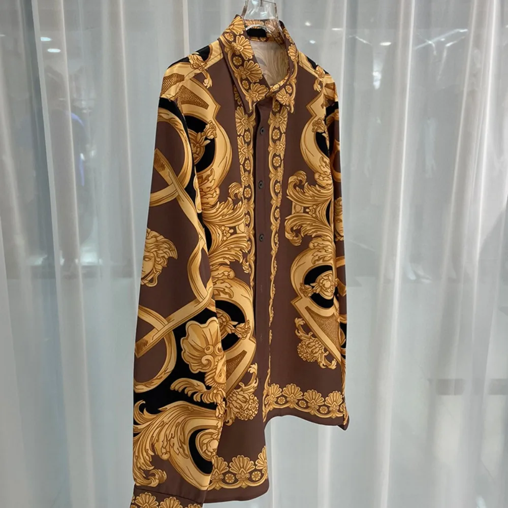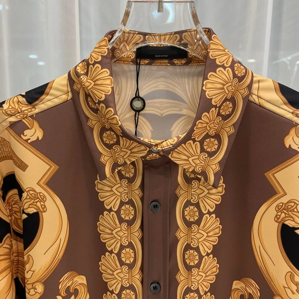 2024 Spring and Autumn New Casual Loose High end Trendy Light Luxury Digital Printed Men’s Long sleeved Shirt Shirt