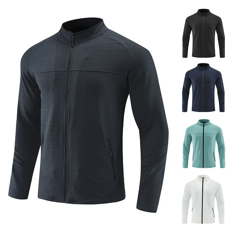 Quick Drying Clothes Men Autumn Sports T-shirt Stand Neck Loose Long Sleeved Outdoor Running Tracksuit Breathable Half Zip Top