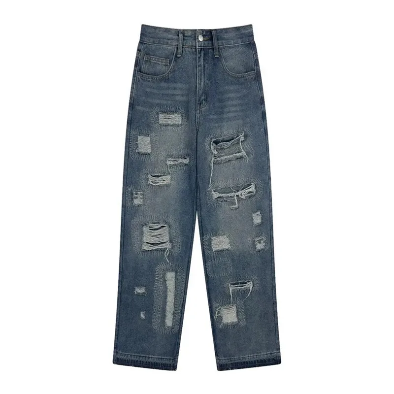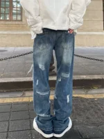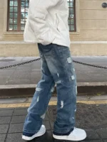 Be the first to review “Blue High Street Jeans Men’s Solid Color Hole Do Old Straight Leg Pants Loose Button Pockets Y2K Trousers A170” Cancel reply