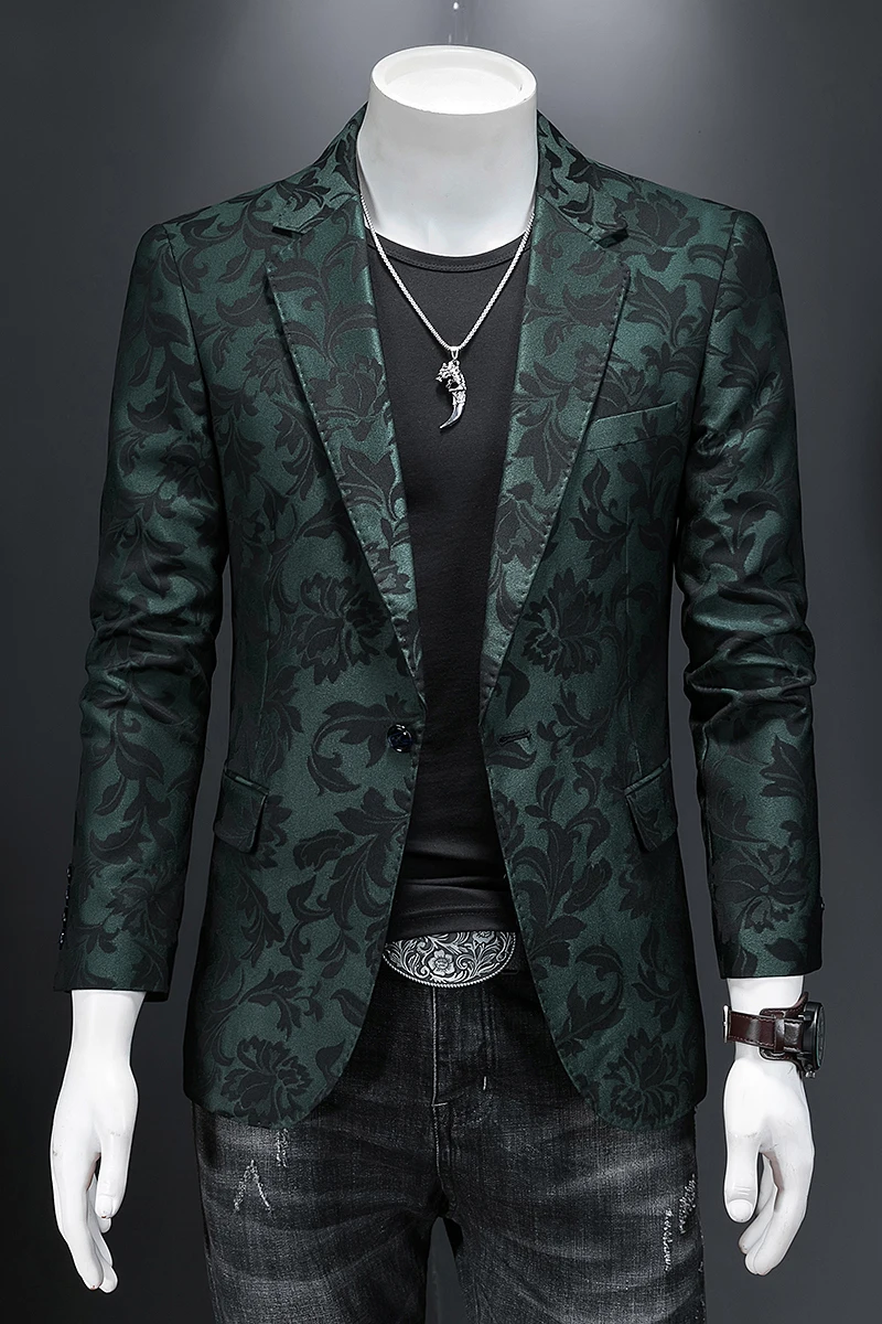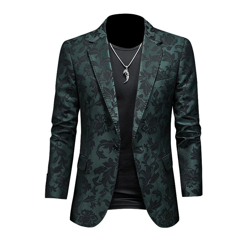 British Style Luxury Jacquard Blazers Men Clothing 2022 Business Slim Fit Casual Suit Coat Men Groom Wedding Suit Printed Blazer