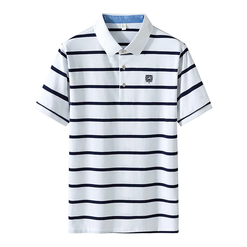 Cotton T Shirt Men Short Sleeve Polo Summer Social Business Casual ‘s T-s Striped Tees Homme 2024 New