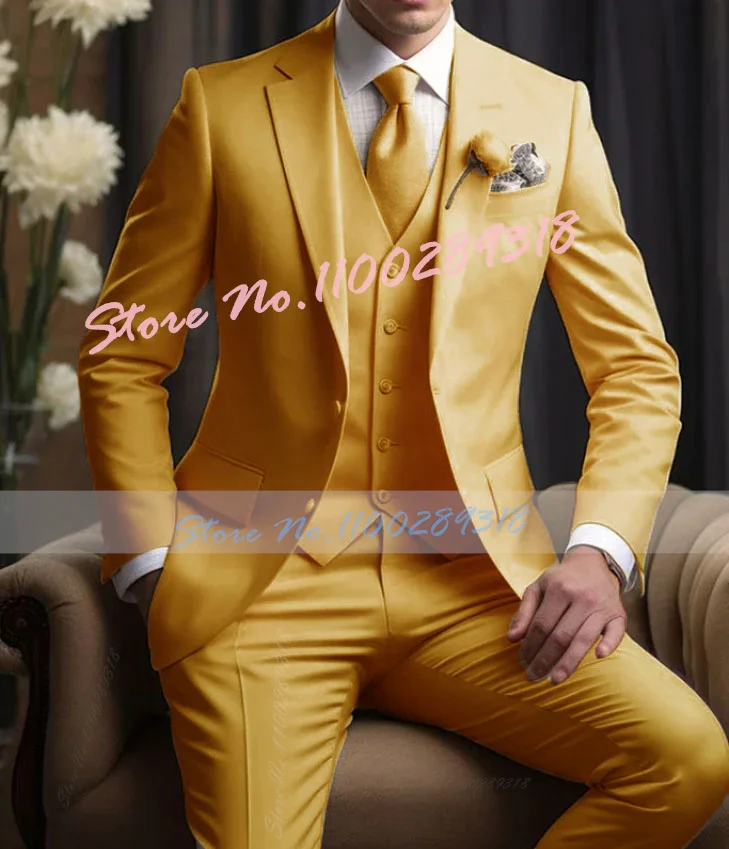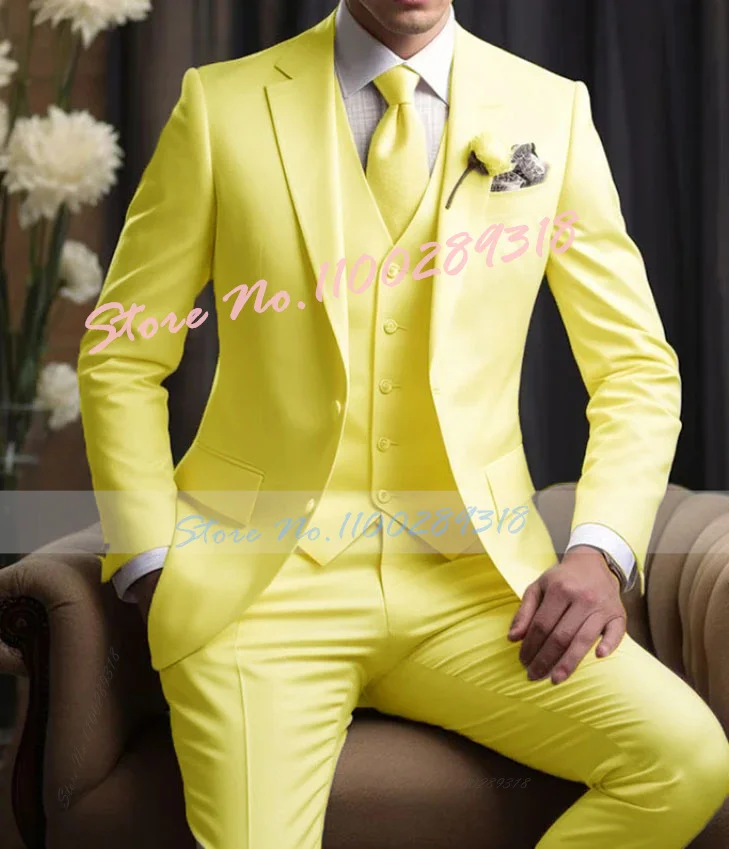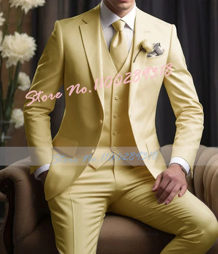 Yellow Double Breasted Men Suit Smart Casual Slim Fit 3 Piece Prom Party Tuxedo Italian Custom Groom Blazer Sets Terno Masculino