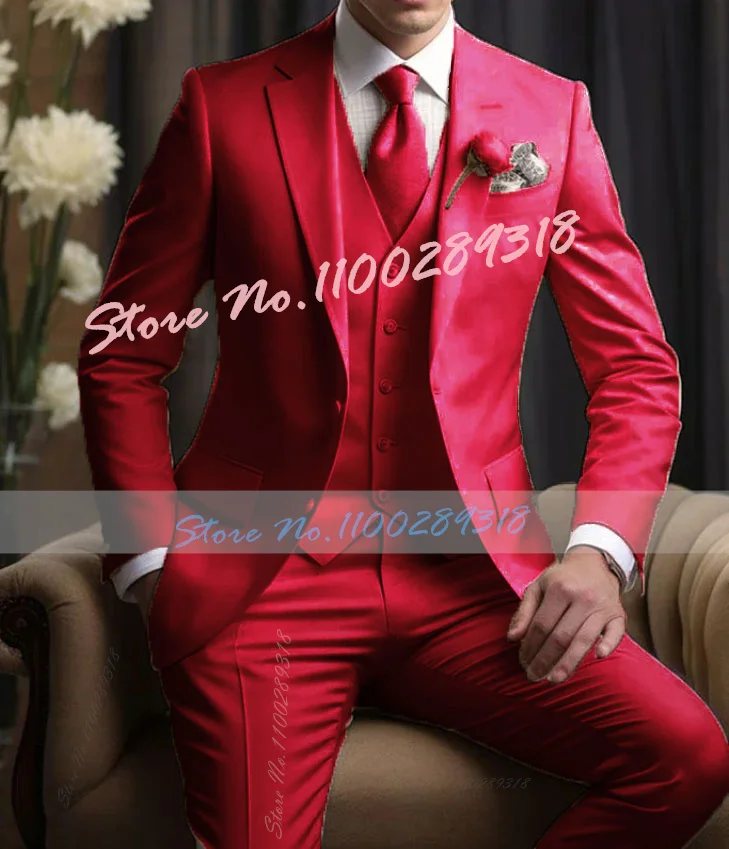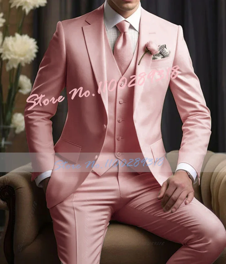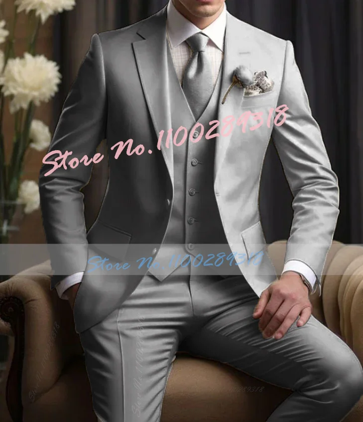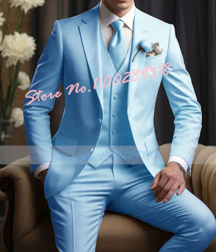 Elegant Wedding Men’s Suits Blazer Slim Fit 3 Pcs Jacket Pants Vest Luxury Costume Homme Formal Party Male Clothing