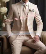 Champagne Beige Formal Wedding Suits For Men Prom Tuxedo Slim Fit 3 Piece Groom Blazer Sets Jacket Terno Masculino Costume Homme