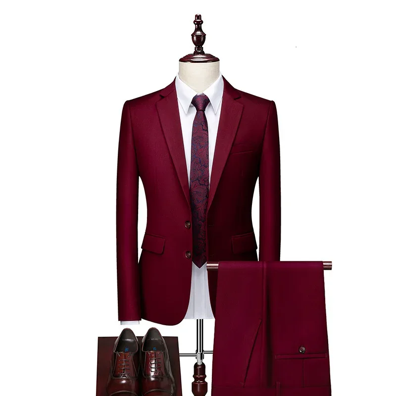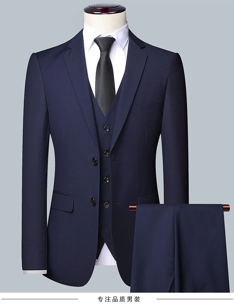 High Quality (Blazer+Waistcoat+Trousers)Men Simple Business Elegant Fashion Job Interview Gentleman Suit Slim 3 and 2 piece Suit