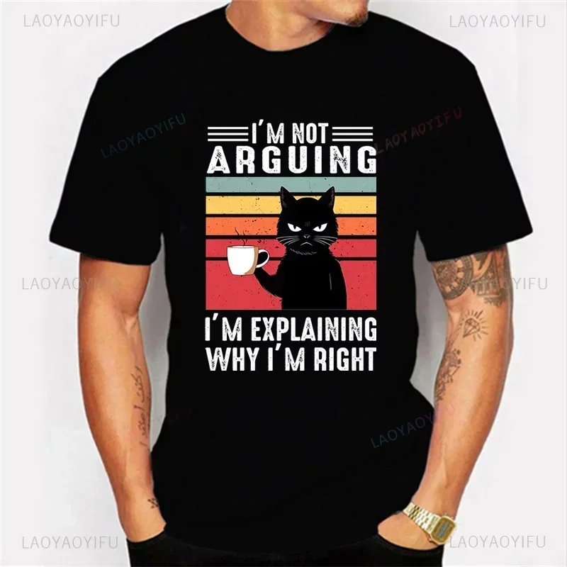 I’m Not Arguing Graphic Printed Man T Shirts Funny Cartoon Black Cat Coffee Tshirts Fashion Harajuku Casual Streetwear Soft Tees