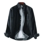 17oz Heavyweight Retro Casual Wear Men’s Shirt Coat Washed Denim Cargo Jeans Oversized Tops Vertical Stripped Long Sleeve Male