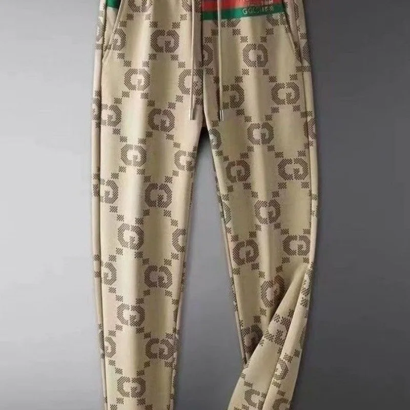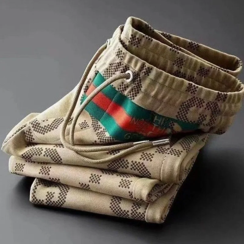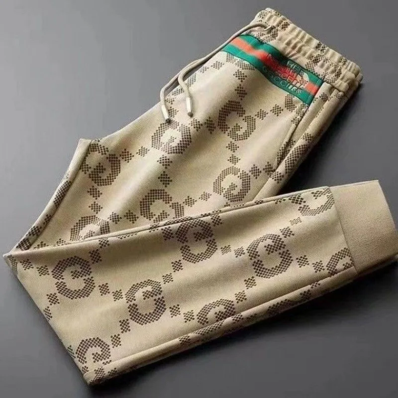 Men’s Clothing Spring and Autumn Light Luxury Printed Slim-fit Sports Pants Men’s Trendy Brand Casual Pants