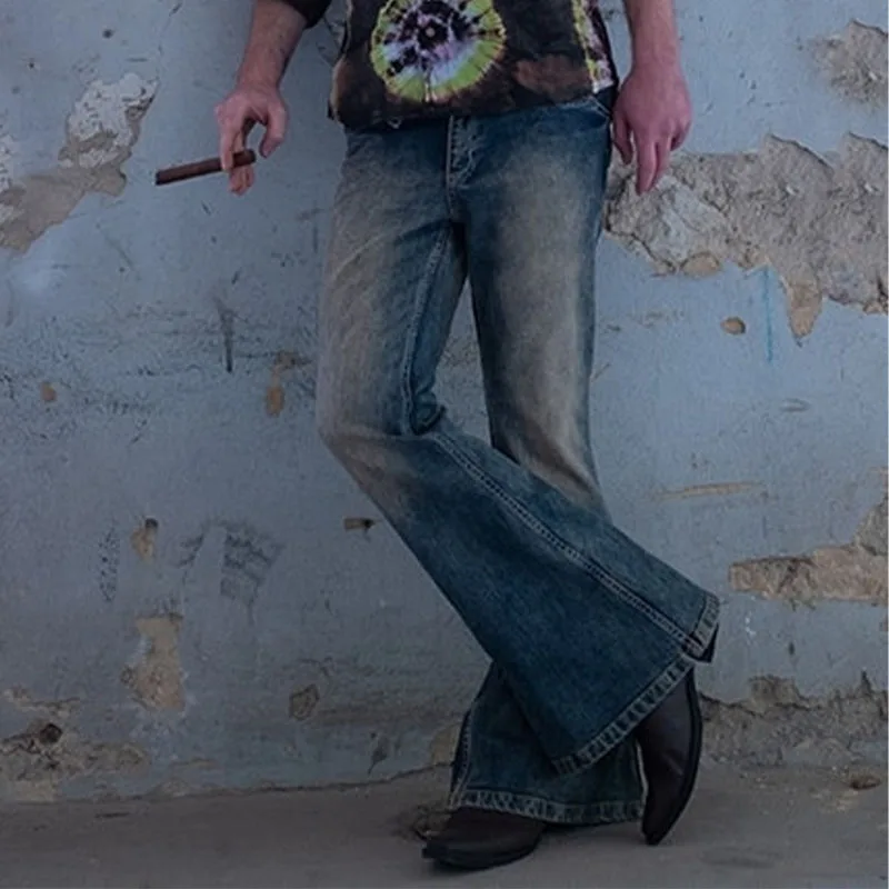 Men’s Flare Jeans Autumn Winter Vintage Solid Straight Jeans Men High Street Button Denim Flare Pants Streetwear Trousers S-3XL