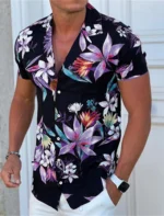 Men’s Shirt Button Summer Floral Shirts for Men Street 3d Print Plus Size Hawaiian Beach Breathable Short Sleeve