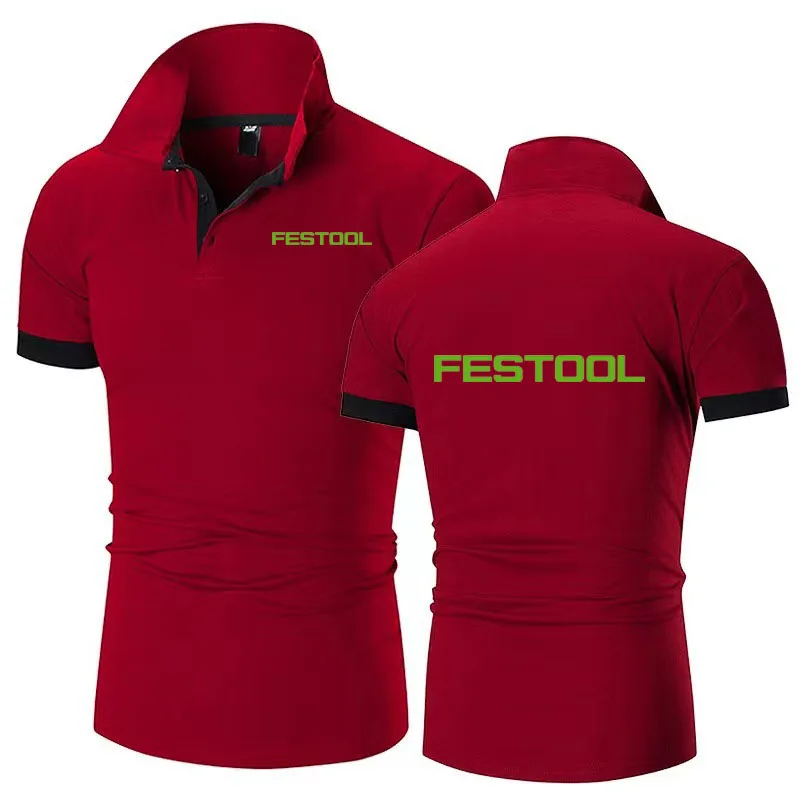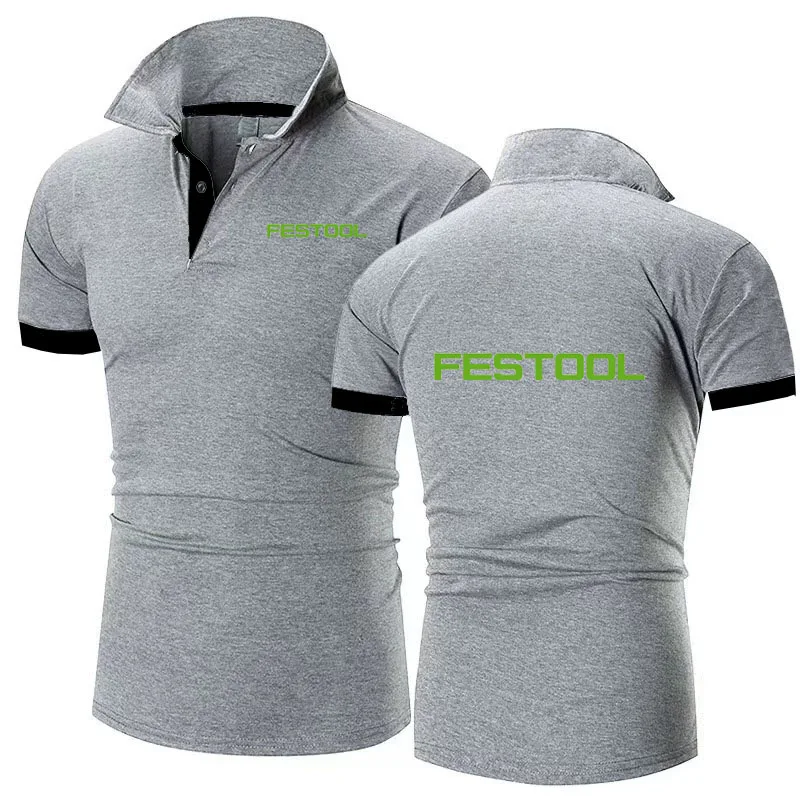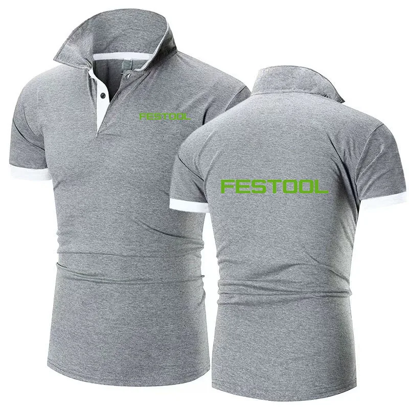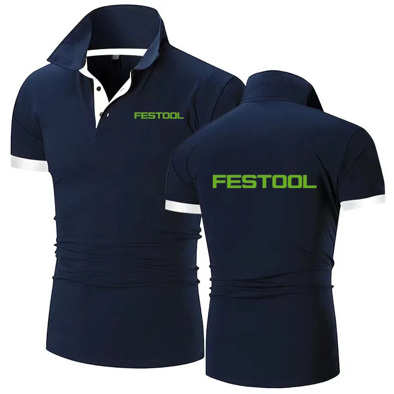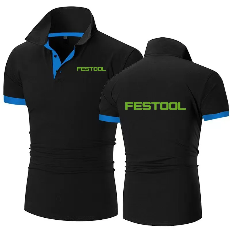 New Men’s lapel T-shirt Polo Shirt Festool tools print Breathable Business Fashion cotton T-Shirt Male Golf -Shirt S-6xl