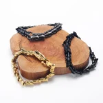 Wholesale Price 6MM Stainless Steel Plated Gold Black Square Pearl Chain Bracelet Fashion Jewelry For Men and Women 18/20cm