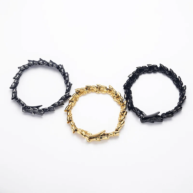 Be the first to review “Punk Rock Titanium Steel Dragon Head Link Chain Bracelets Bangle for Men Retro Jewelry Black Gold Silver Color Drop Shipping” Cancel reply