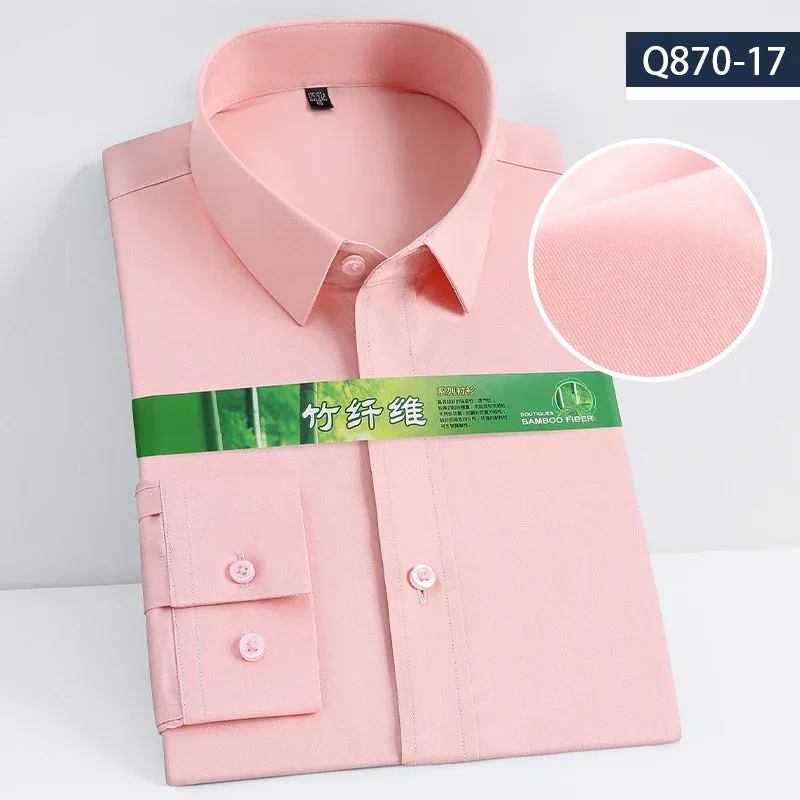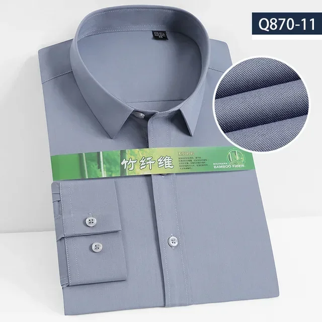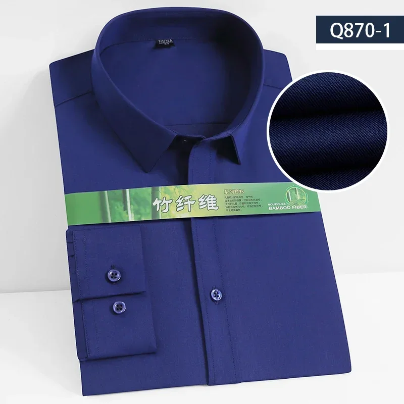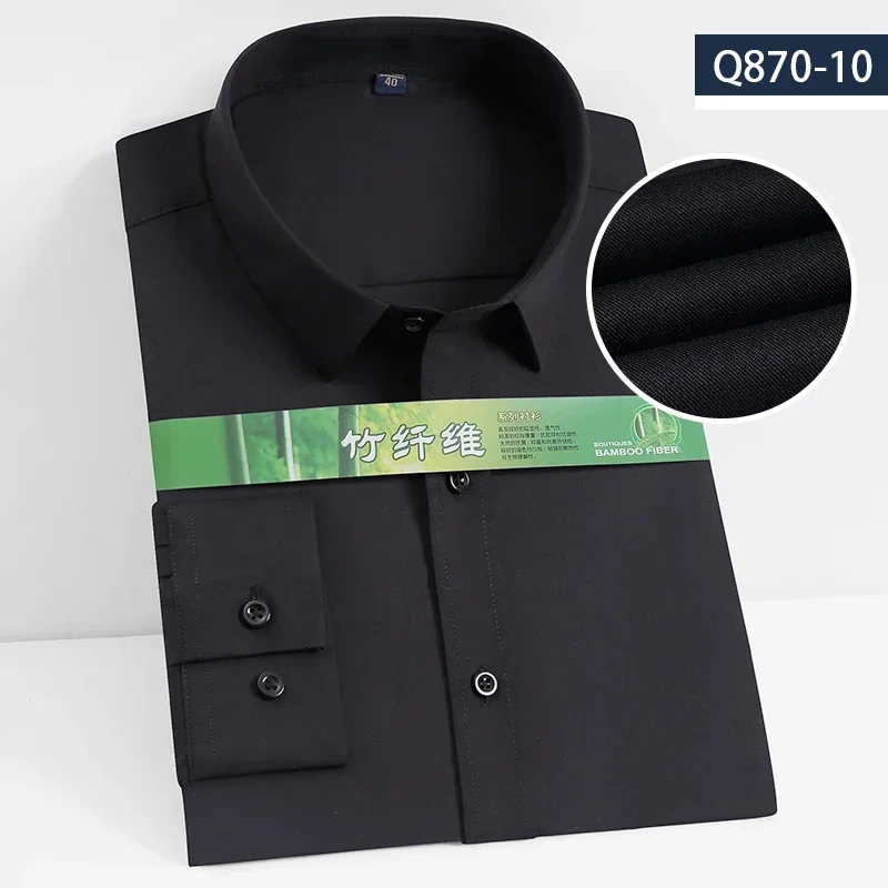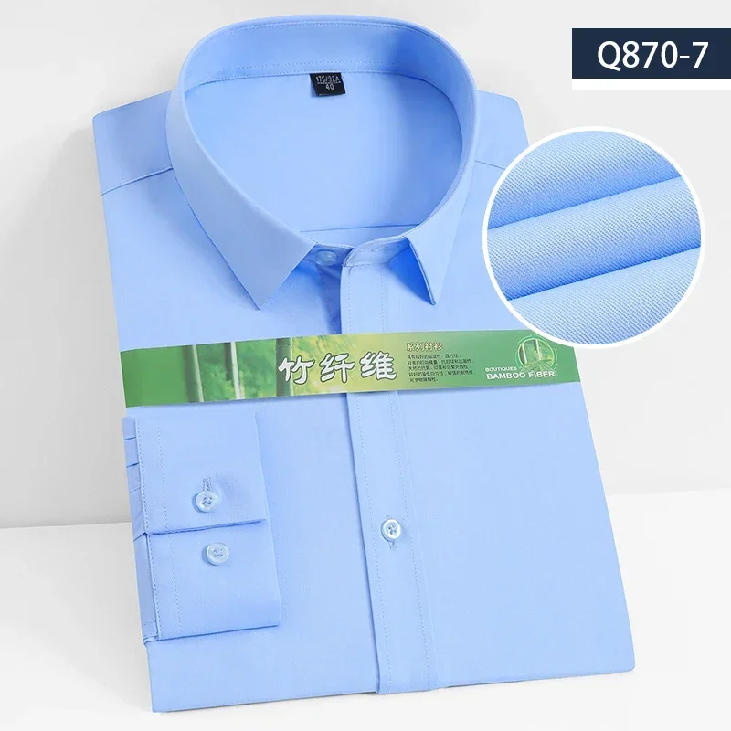 S~8XL Bamboo Fiber Men’s White Shirt Long Sleeve Dress Shirts For Men Slim Stretch Anti-wrinkle Fit Camisa Social Formal Shirts