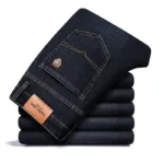 Be the first to review “SHAN BAO 2024 autumn spring fitted straight stretch denim jeans classic style badge youth men’s business casual jeans trousers” Cancel reply