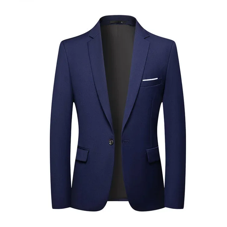 Single West Spring and Autumn New Business Fashion Suit Korean Version Slim Men’s High-end Solid Color Trend Coat Polyester