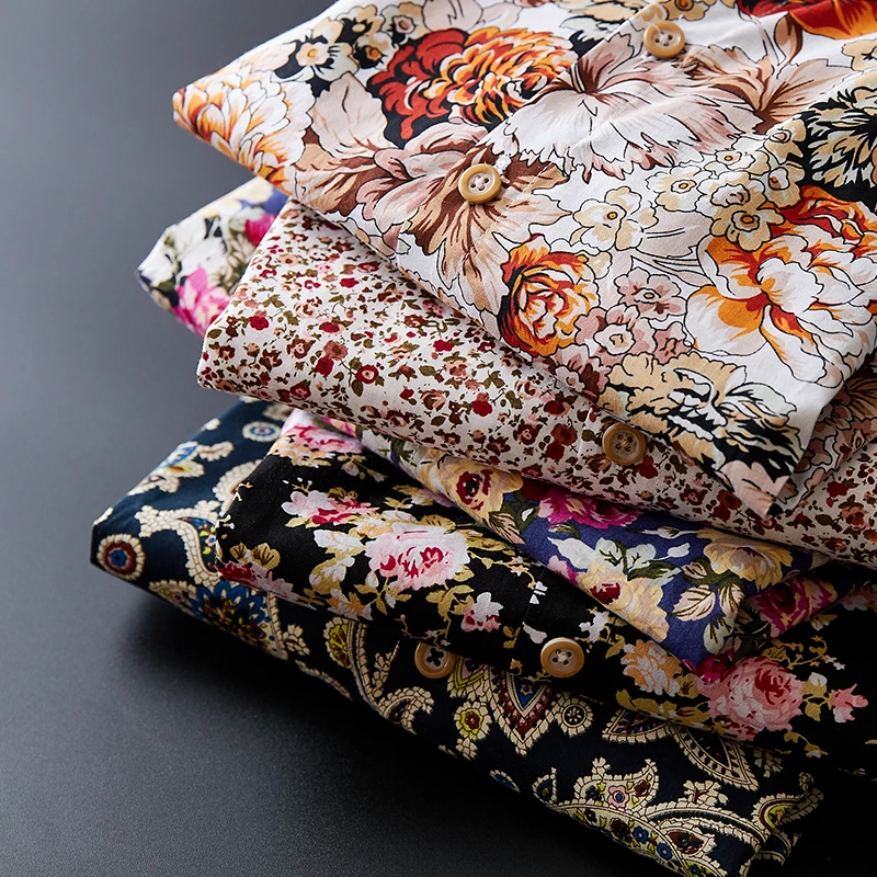 Fashion korean100%cotton casual long-sleeve shirts for men slim fit plain tops print designer vintage elegant clothes streetwear