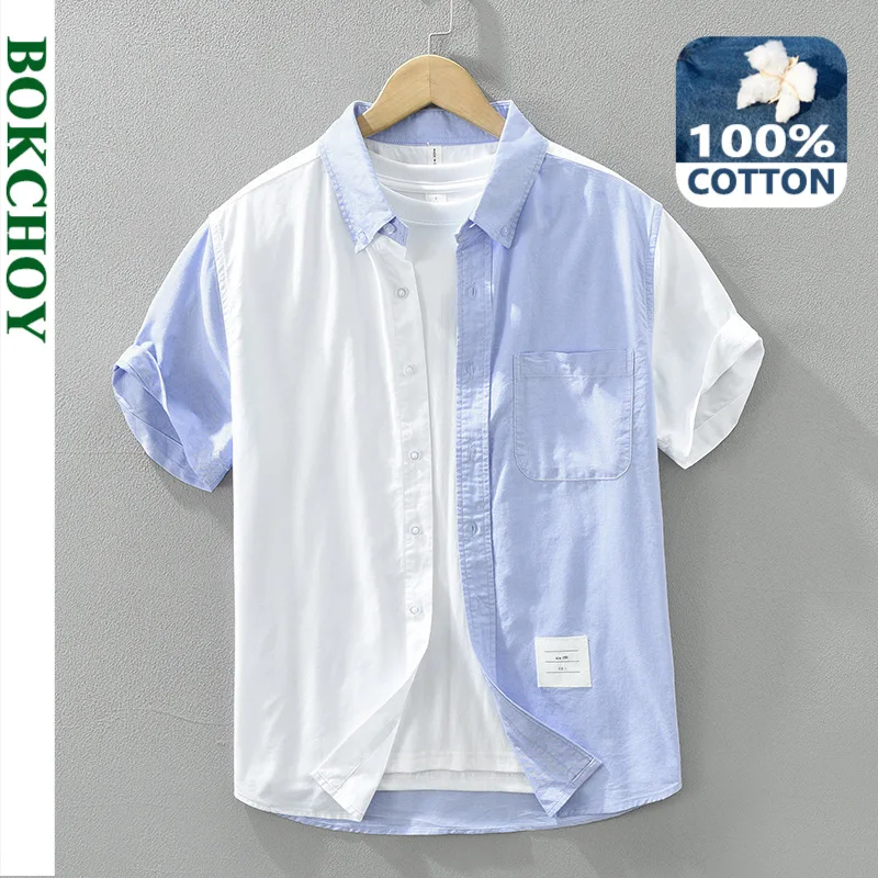Spring Summer New 100% Cotton Casual Patchwork Shirts for Men Clothing Fresh Streetwear Men Shirts CM8027