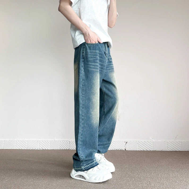 Streetwear Vintage Blue Wide Jeans Men Korean Fashion Washed Casual Trousers Male Straight Personality Baggy Denim Pants