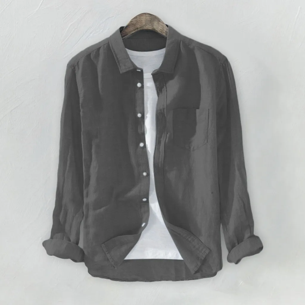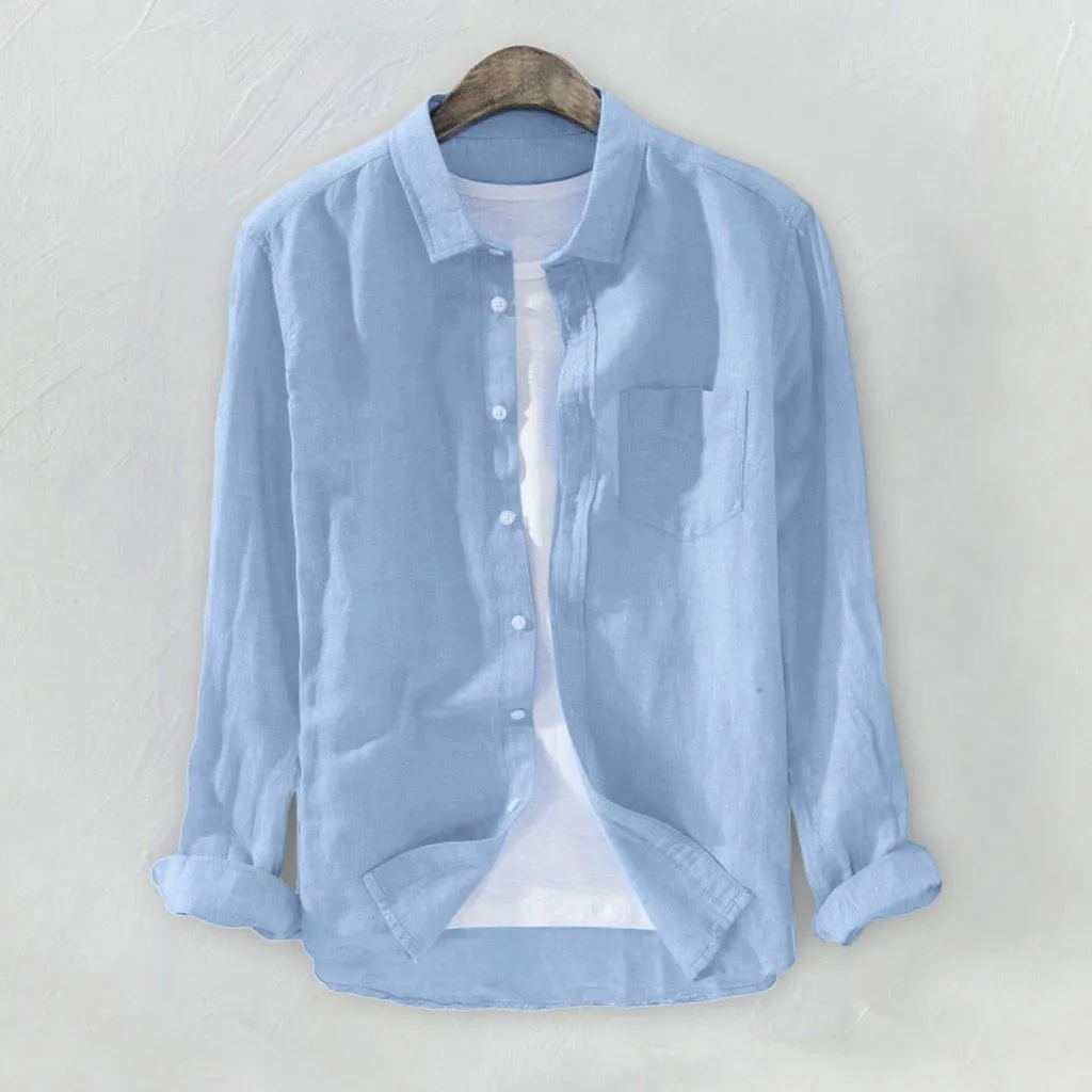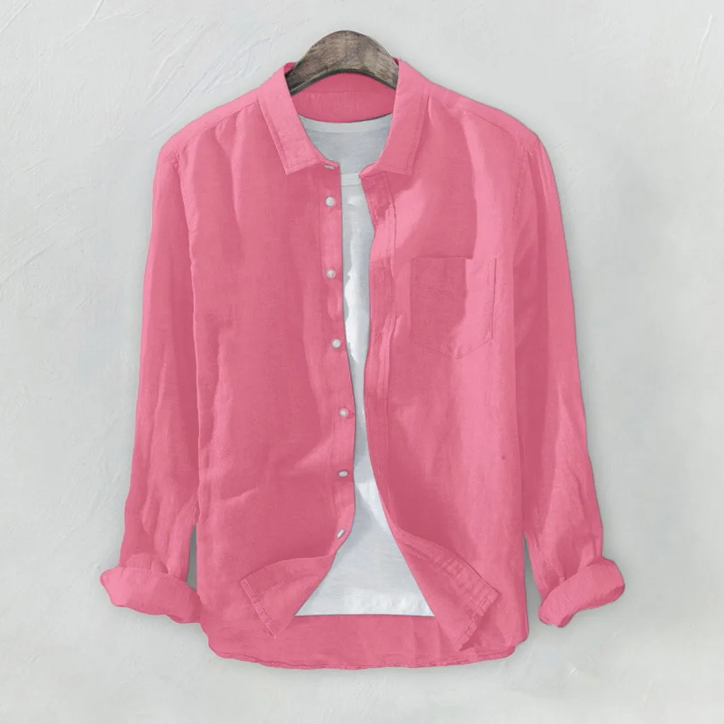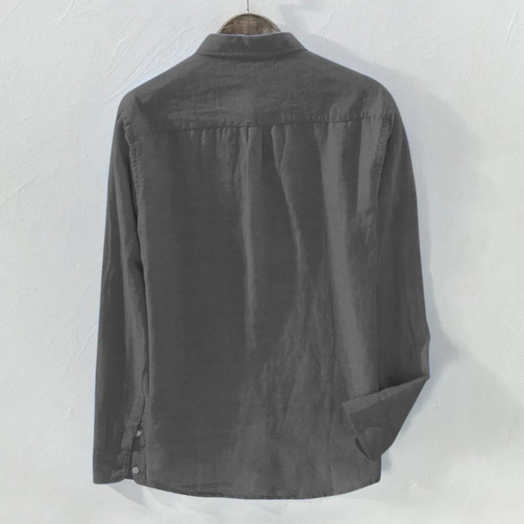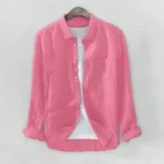 Summer Plus Size Shirts For Men Fashion Fresh Baggy Solid Color Cotton Linen Long Sleeve Button Blouse Tops With Pockets