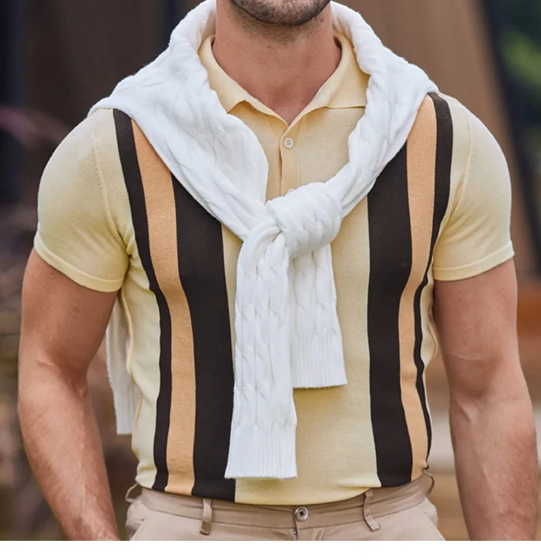 Summer Polo Shirt Men Business Casual Striped Contrast Color Short Sleeve Turn Down Collar s T Clothing