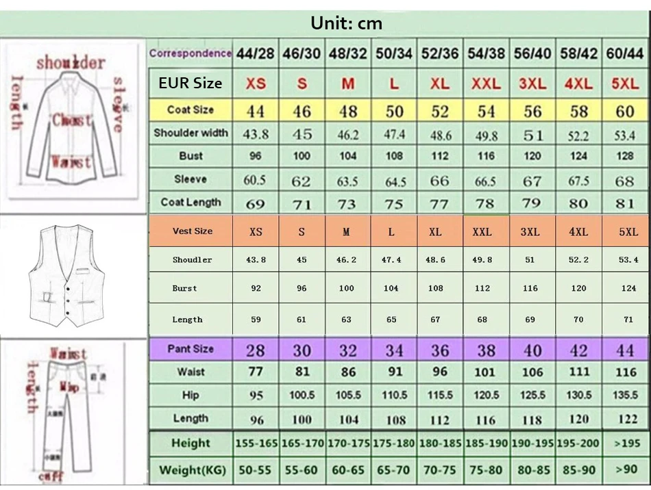 Item Type: 3 pieces(Jacket & Pant & Vest)