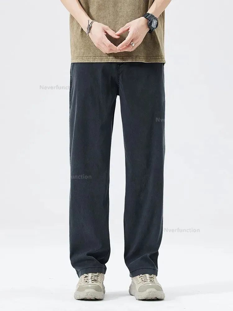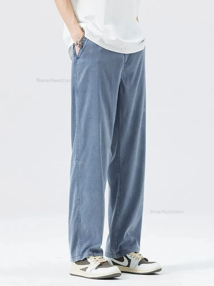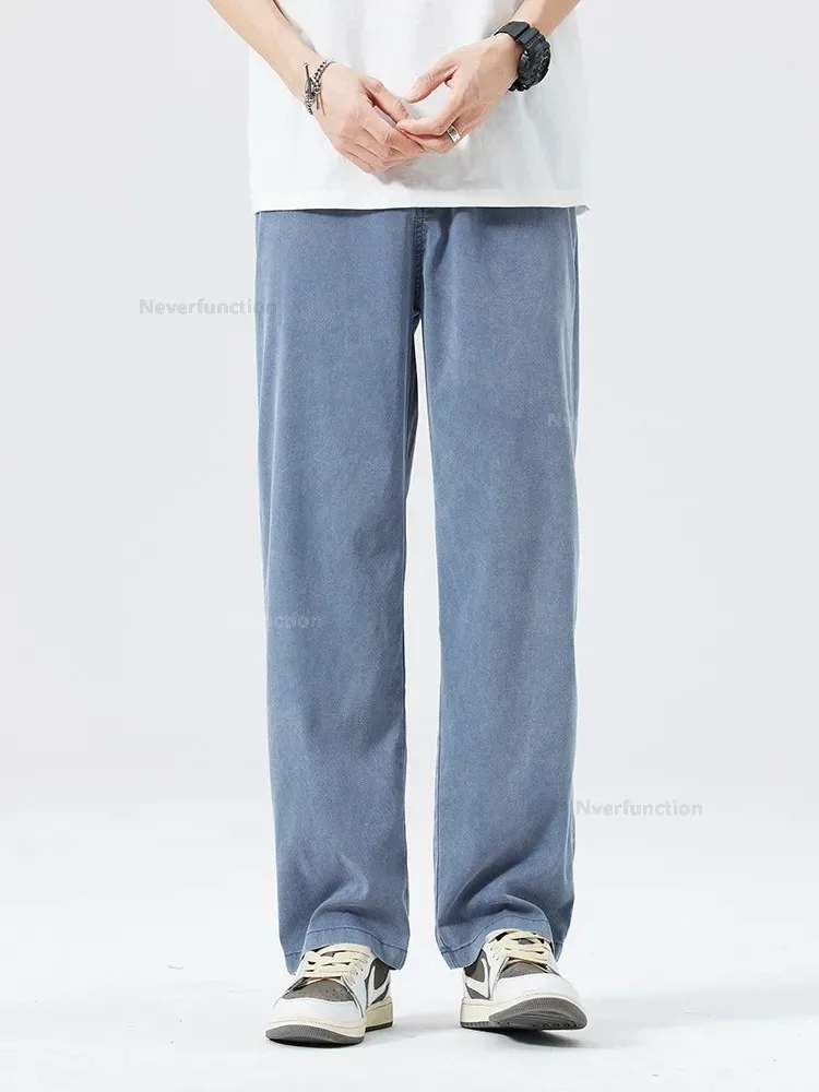 Ultra Thin Baggy Jeans Men’s Summer New in Lyocell Soft Breathable Straight Trousers Elastic Waist Casual Blue Gray Wide Pants