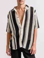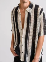 Be the first to review “Vintage Striped Knitting Mens Shirt Summer Casual Breathable Hollow Out Knit Shirts Men Cardigan Short Sleeve Button Lapel Tops” Cancel reply