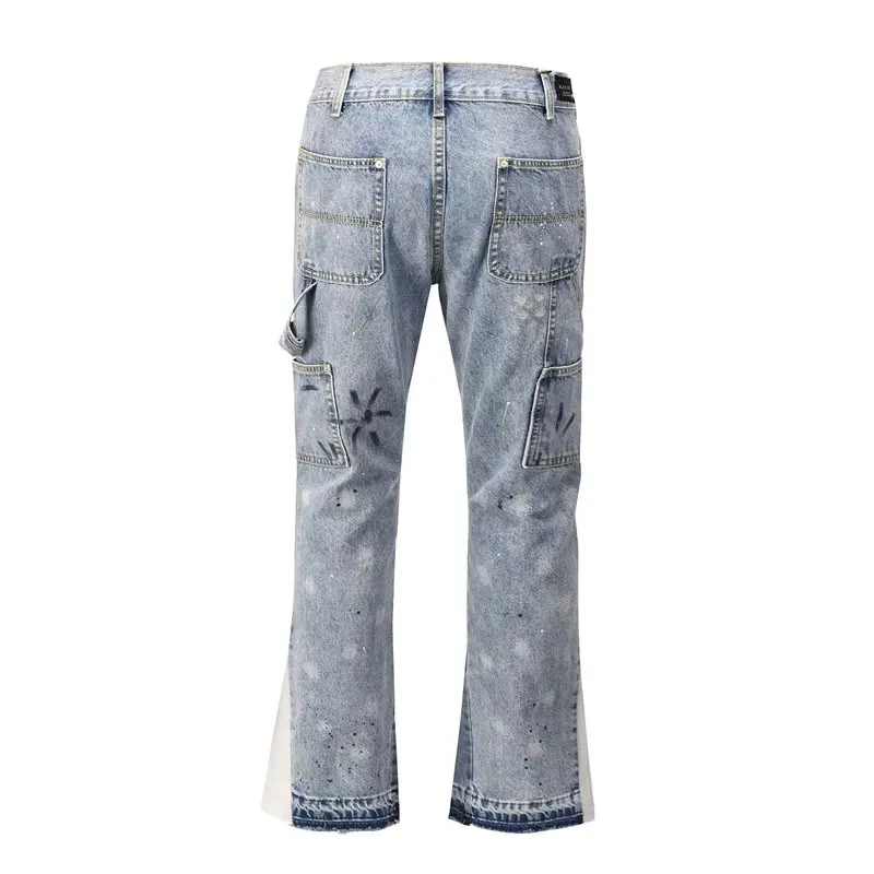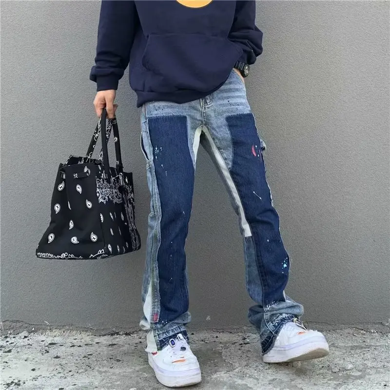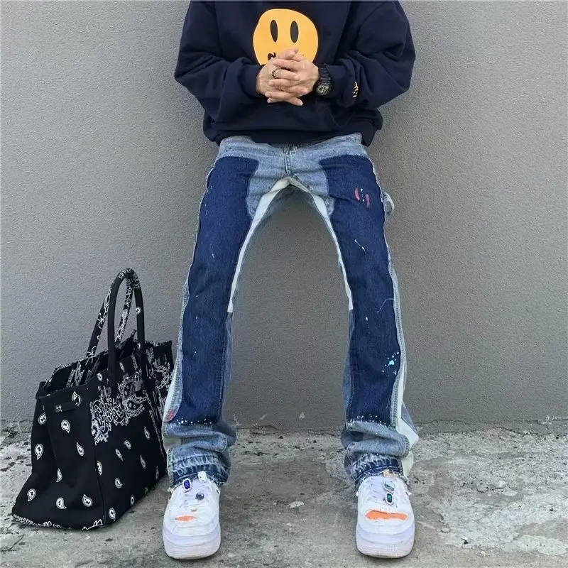 y2k Jeans Painting Patch Baggy Stacked Jeans Y2K Cargo Flare Pants For Men Clothing Washed Blue Denim Trousers pants for mens